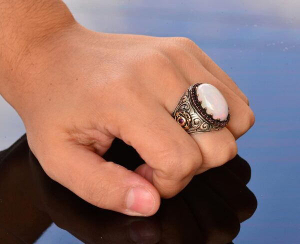Gerçek Doğal Avustralya Opal Taşlı Yüzük, 7.55 Karat, Kral Yüzüğü, Sterlin Gümüş Yüzük, Nişan Yüzüğü