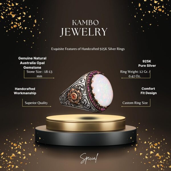 Gerçek Doğal Avustralya Opal Taşı Yüzük, 7.55 Karat, Kral Yüzüğü, Gümüş Yüzük, Nişan Yüzüğü