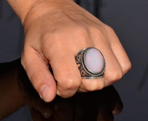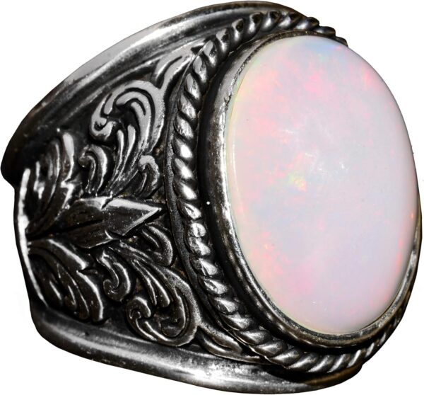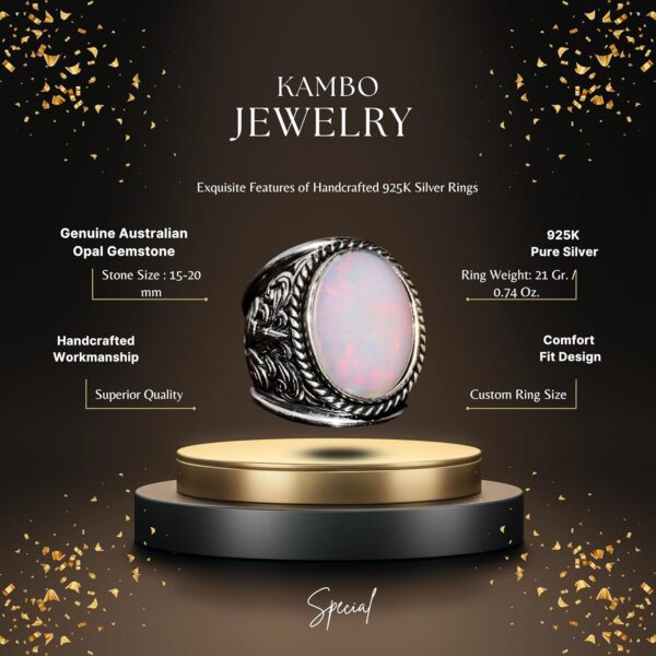Gerçek Doğal Avustralya Opali Gerçek 10.00 Karamel Taş Yüzük – Özel Erkek Yüzüğü – Sterlin Gümüş Büyük Yüzük