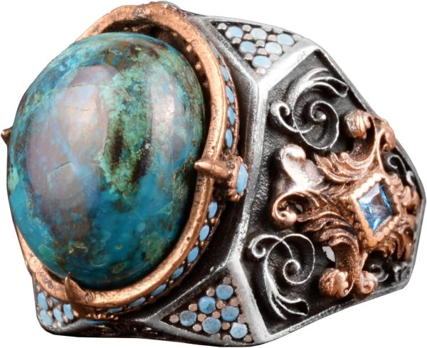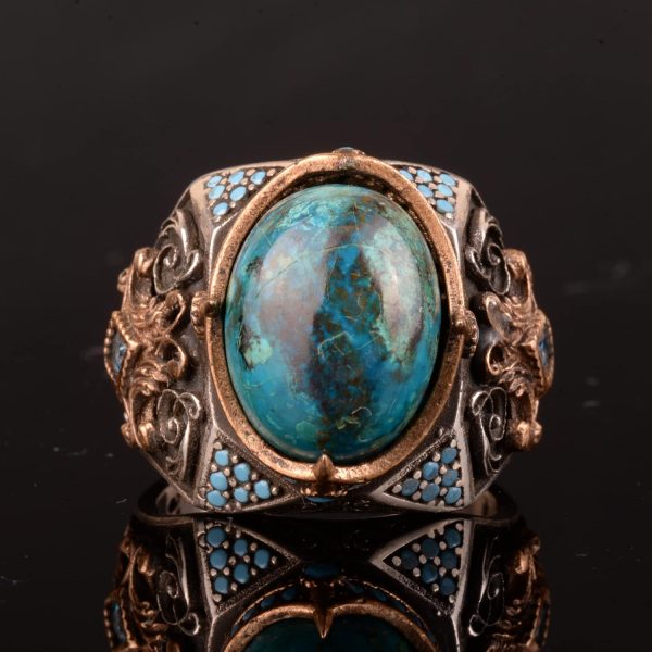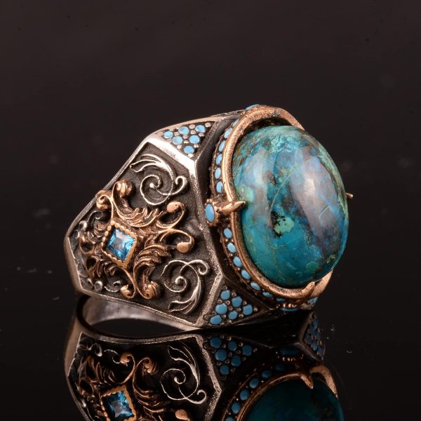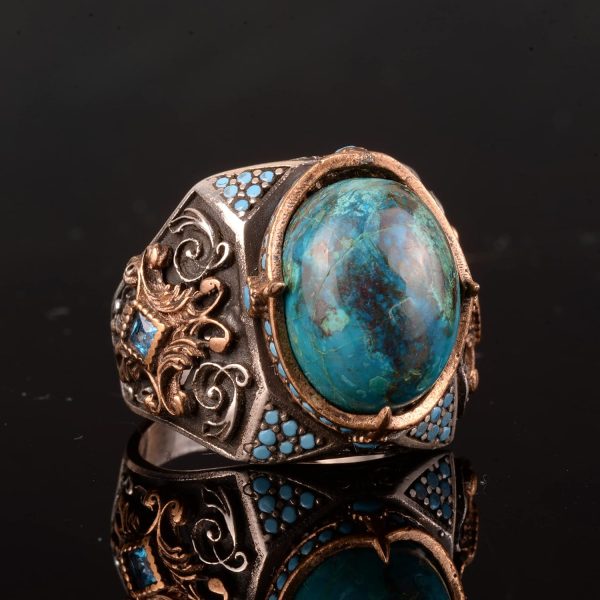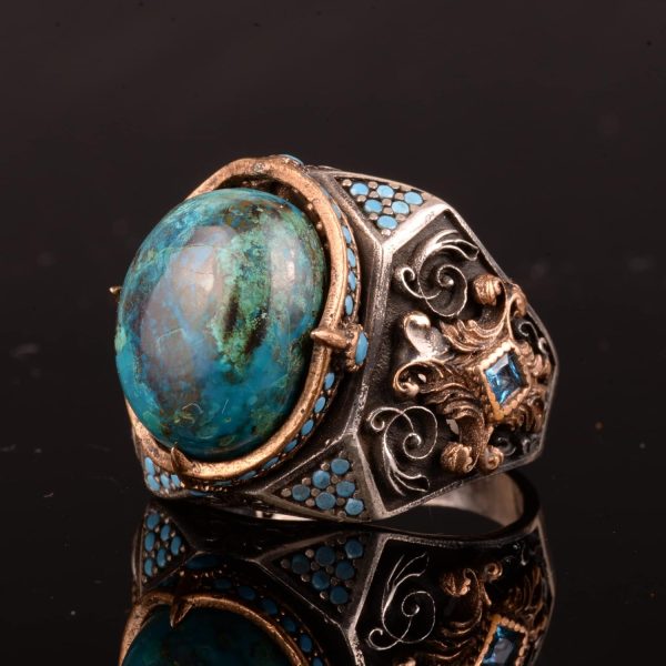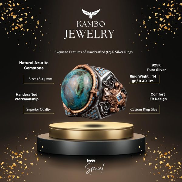 Gerçek Doğal Azuirit Taşı Yüzük, 925 Ayar Gümüş Yüzük, Sultan Erkek Yüzüğü