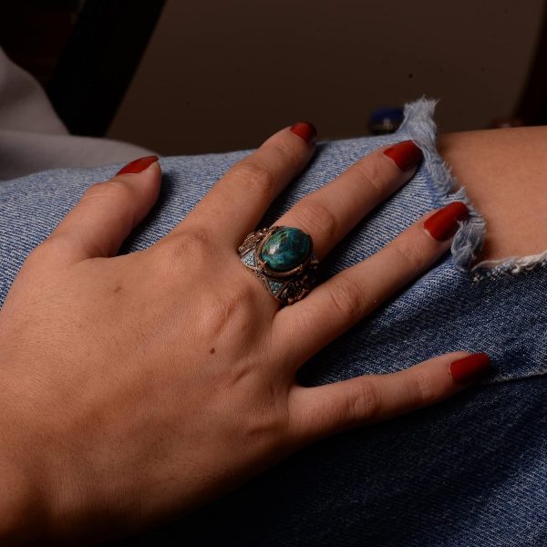 | Taş Tipi | Doğal Azurit Doğal Azurit, derin lacivert tonlarıyla dikkat çeken, görsel olarak güçlü bir etkiye sahip bir taştır. Tarih boyunca sezgi, içgörü ve dönüşüm gibi sembollerle anılmış; kendine özgü dokusuyla sanatsal ve karakterli tasarımlarda öne çıkar. |