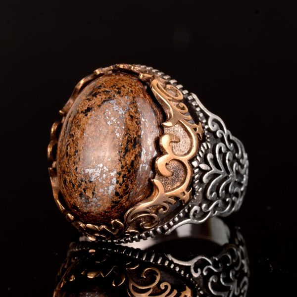 Gerçek Doğal Bronzit Taş Yüzük, 925 Ayar Gümüş Erkek Yüzüğü