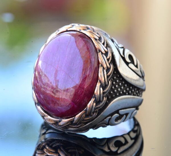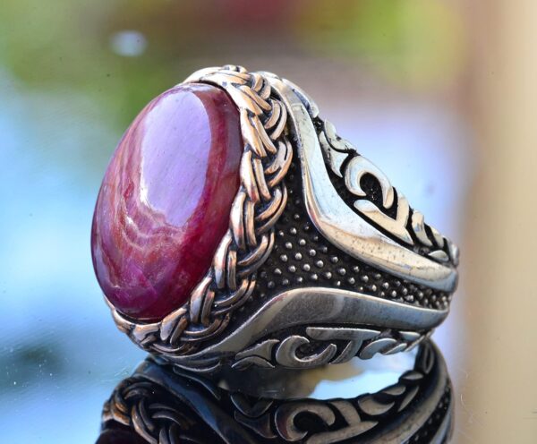 Gerçek Doğal Cabochon Yakut Taşı, Yakut Yüzük, Gümüş Erkek Yüzüğü