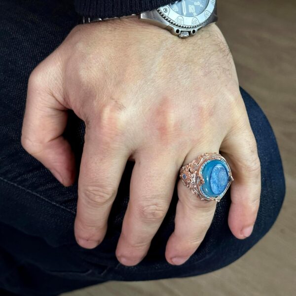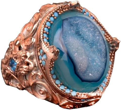 Gerçek Doğal Drusy Kristal Kuvars Taş Yüzük, 925 Ayar Gümüş Yüzük Erkekler İçin