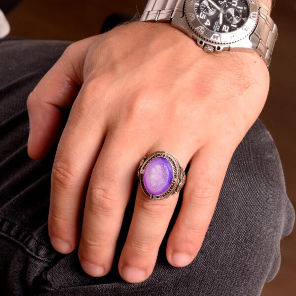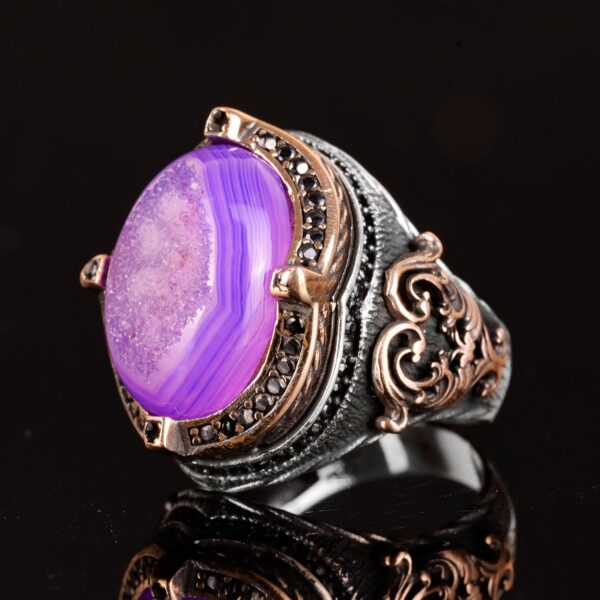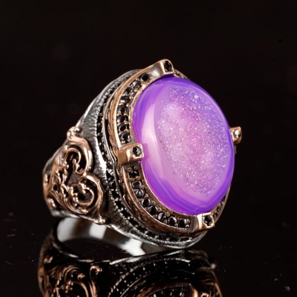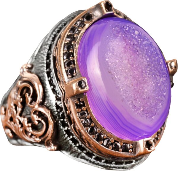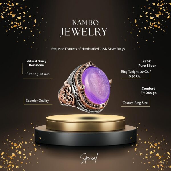 Gerçek Doğal Drusy Kristal Kuvars Taş Yüzük, 925 Ayar Gümüş Yüzük Erkekler İçin, El Yapımı Yüzük