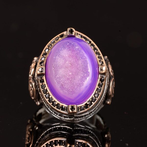 Doğal Druzy Kuvars, taş yüzeyinde oluşan minik kristal kümeleriyle ışıltılı ve göz alıcı bir yapıya sahiptir. Doğal parıltısıyla öne çıkar; özgün dokusu sayesinde takılara hem şık hem de doğal bir hava katar.