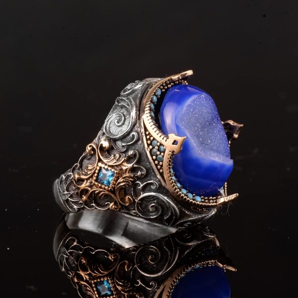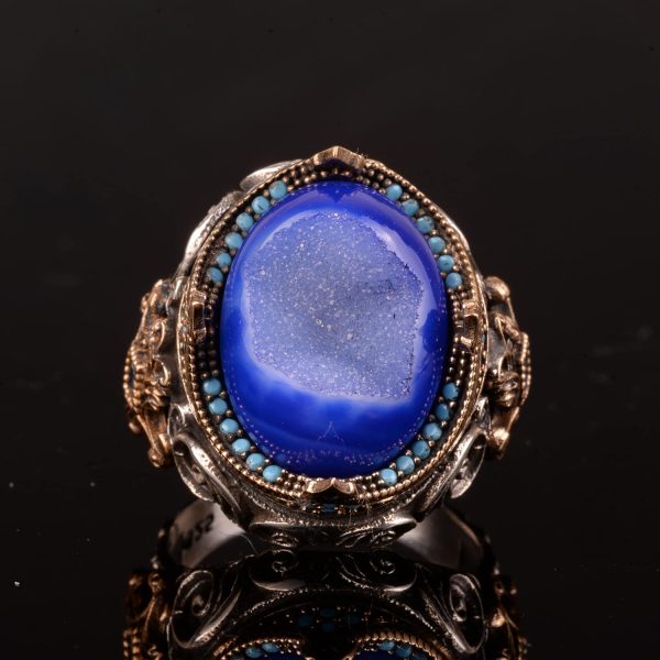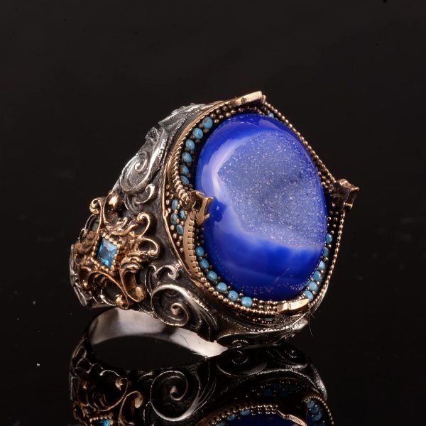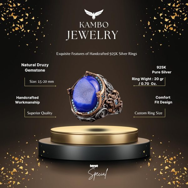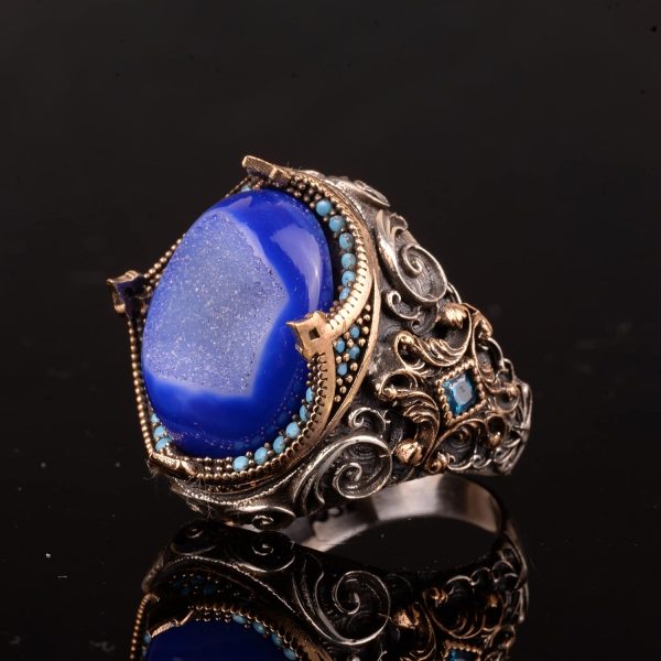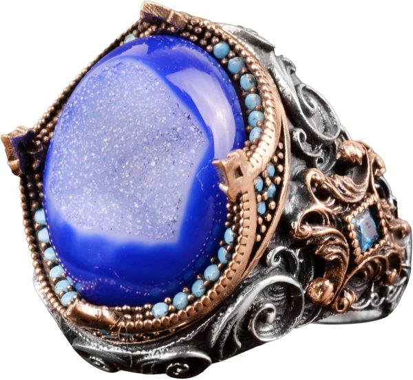 Gerçek Doğal Druzy Kristal Kuvars Taş Yüzük, 925 Ayar Gümüş Yüzük Erkekler İçin