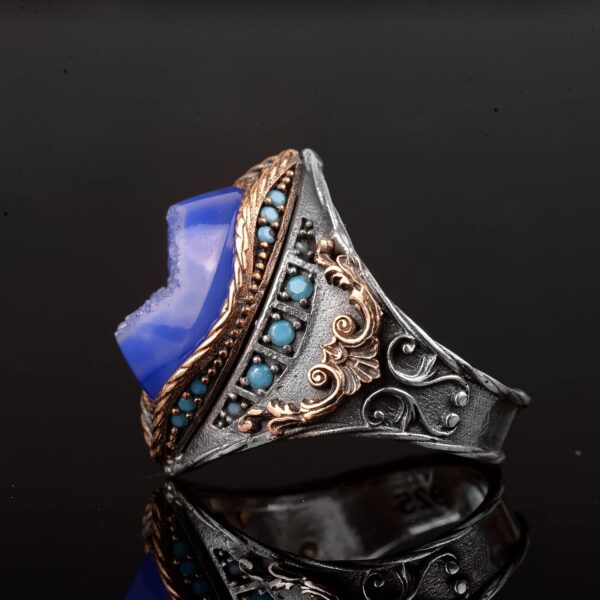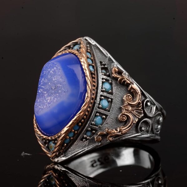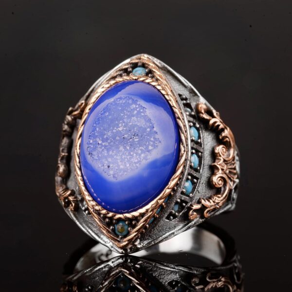 Gerçek Doğal Druzy Kristal Kuvars Taş Yüzük, 925 Ayar Gümüş Yüzük Erkekler için