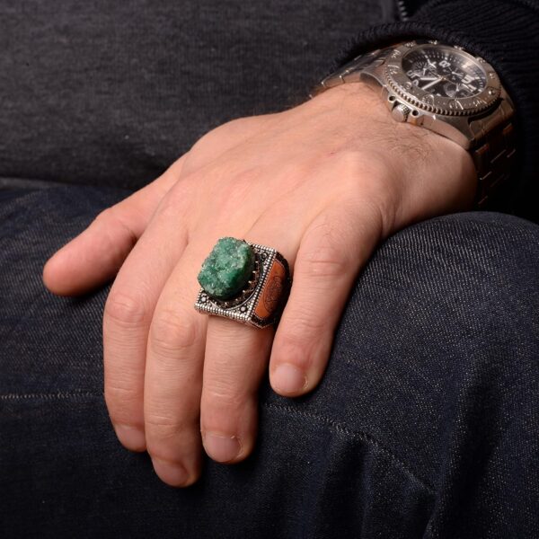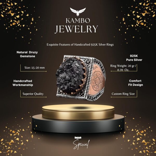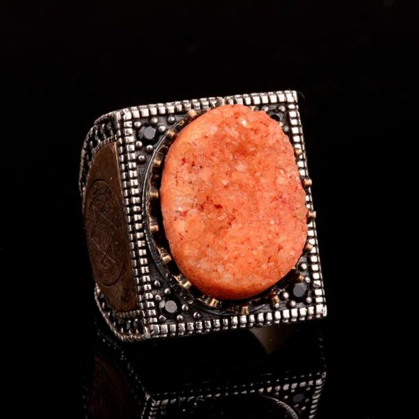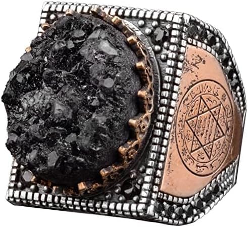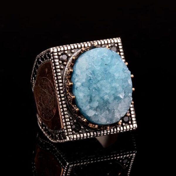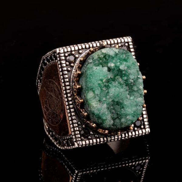 Gerçek Doğal Druzy Kristal Kuvars Taş Yüzük Erkekler İçin, Kral Süleyman Yüzüğü, 925 Ayar Gümüş Erkek Yüzüğü