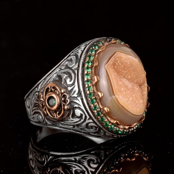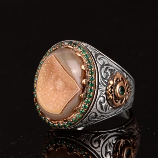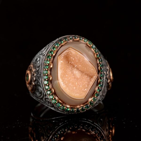 Gerçek Doğal Druzy Kuvars Taş Yüzük – 925 Ayar Gümüş Yüzük – Lüks Yüzük