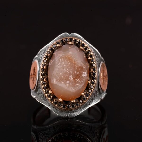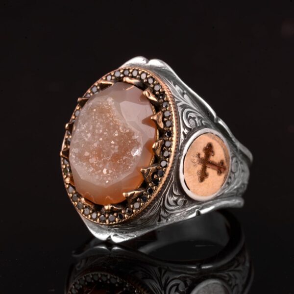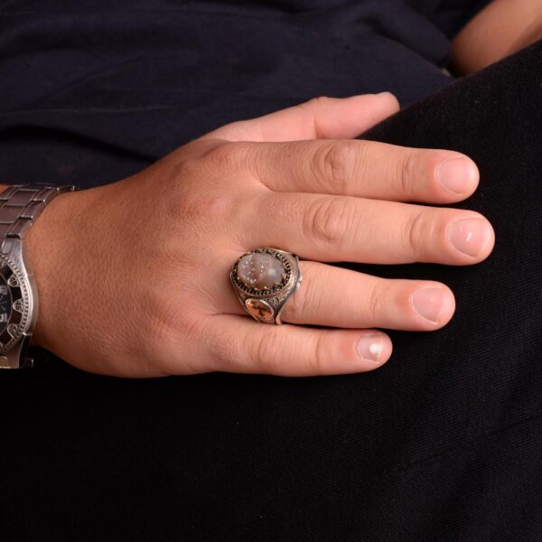 Gerçek Doğal Druzy Kuvars Taş Yüzük, Büyük Yüzük, 925 Ayar Gümüş Yüzük Ağırlık: 21.34gr