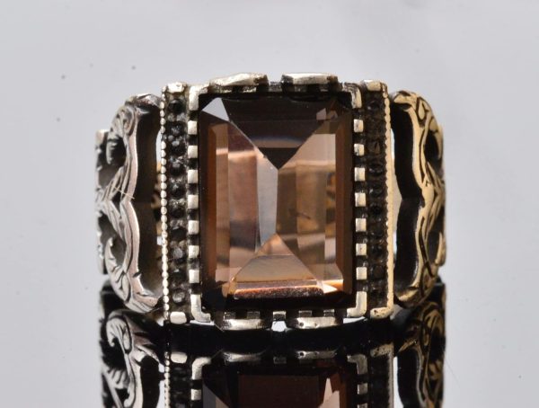 925 Ayar Gümüş erkek yüzüğü etnik tasarım, Eşsiz El Yapımı Gümüş Yüzük. Taş Boyutu: 14-10 mm Ağırlık: 10.21 gr Gerçek Doğal Dumanlı Kuvars Taş Yüzüğümüzle stilinizi yükseltin, yüksek kaliteli 925 ayar gümüşten titizlikle işlenmiştir. Bu erkek yüzüğü, zengin kahverengi rengi ve olağanüstü berraklığı ile tanınan 7.55 karatlık gerçek dumanlı kuvars taşını içermektedir. Şık tasarımı, dumanlı kuvarsın doğal güzelliğini sofistike zanaatkarlıkla mükemmel bir şekilde harmanlayarak her türlü özel durum için zamansız bir parça haline getirir. Bu yüzük sadece zarafetin bir sembolü değil, aynı zamanda her kıyafeti tamamlayan şık bir aksesuardır. Dayanıklı yapısı uzun süreli kullanım sağlar, parlatılmış yüzey ise bir dokunuş zarafet ekler. İster günlük olarak ister özel günlerde takın, bu yüzük mükemmel zevkinizin sürekli bir hatırlatıcısıdır. Şık bir hediye kutusunda paketlenmiş olan Dumanlı Kuvars Taş Yüzüğümüz, doğum günleri, yıldönümleri veya herhangi bir özel etkinlik için düşünceli ve anlamlı bir hediye seçeneğidir. Bu güzel 925 ayar gümüş yüzükle gerçek dumanlı kuvars taşıyla süslenmiş benzersiz stilinizi kutlayın.