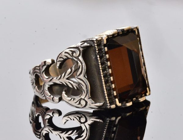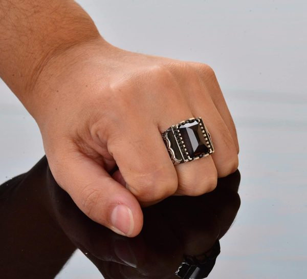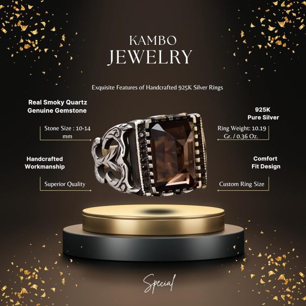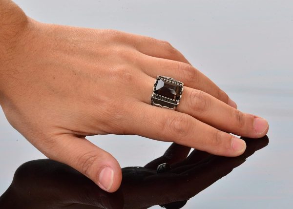 Gerçek Doğal Dumanlı Kuvars Taşlı Yüzük, Sterlin Gümüş Doğum Taşı Yüzüğü için Erkekler