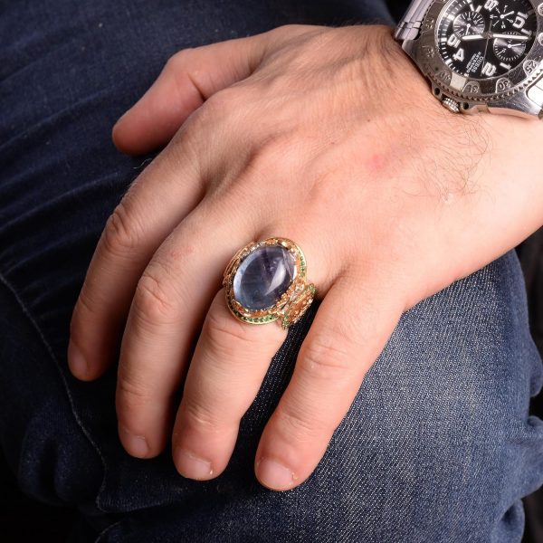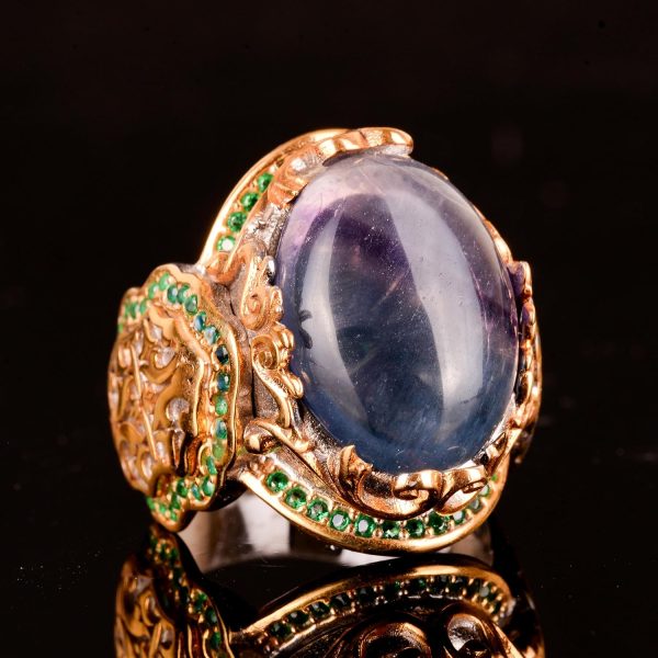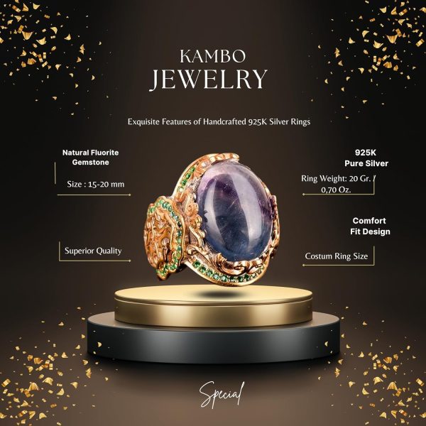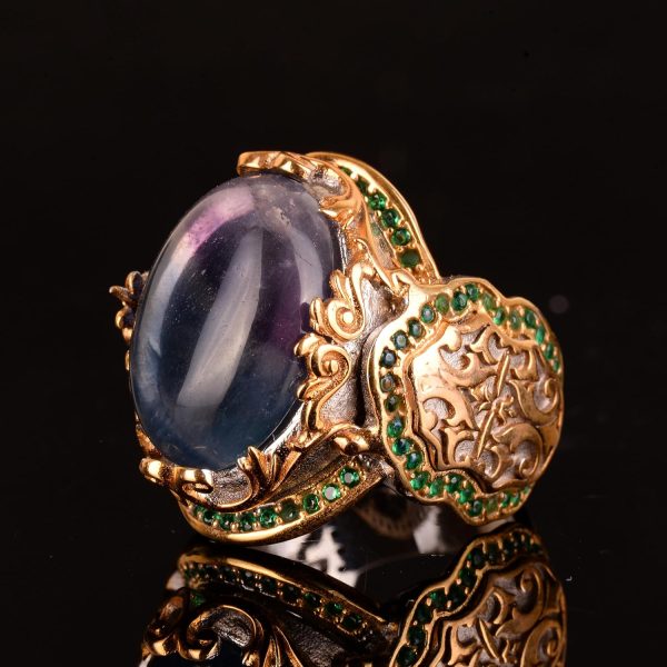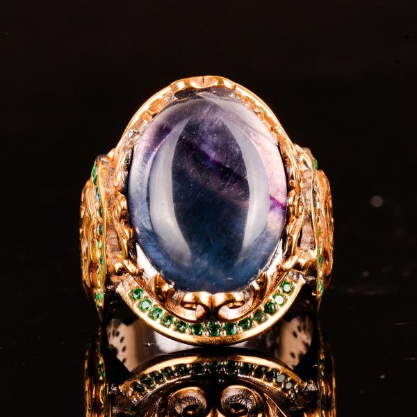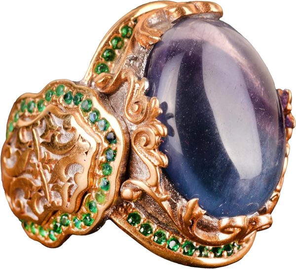 Gerçek Doğal Florit Taşı Yüzük, Sultan Yüzük, 925 Ayar Gümüş Yüzük Erkekler İçin, Hediye İçin