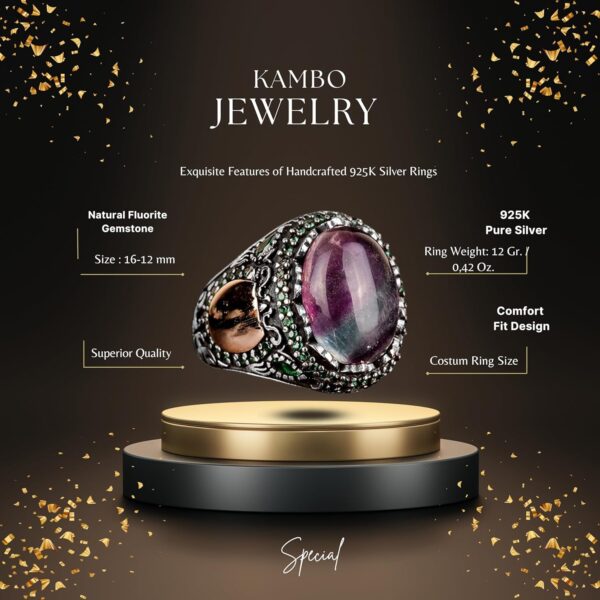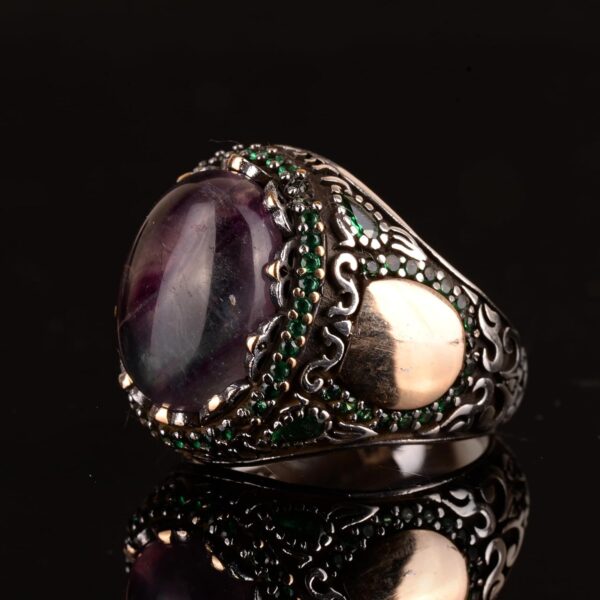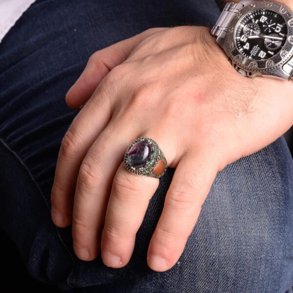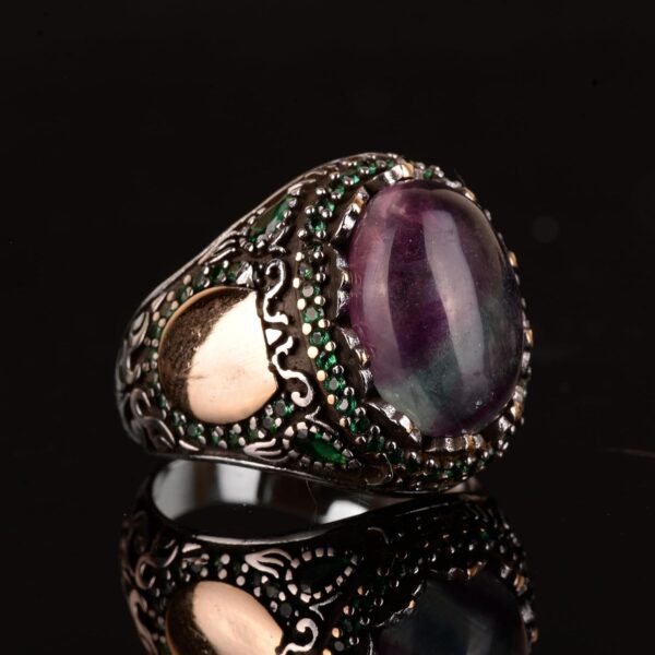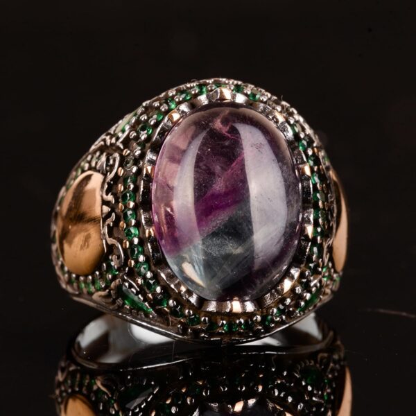 Gerçek Doğal Florit Taşlı Yüzük, Minimalist Yüzük, El Yapımı Yüzük, 925 Ayar Gümüş Yüzük Erkekler İçin