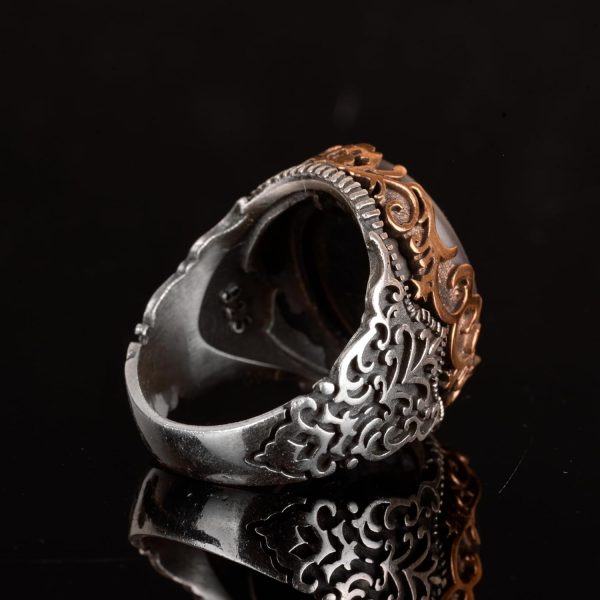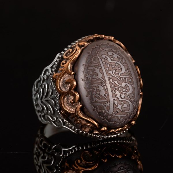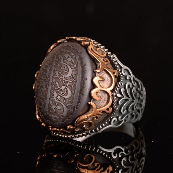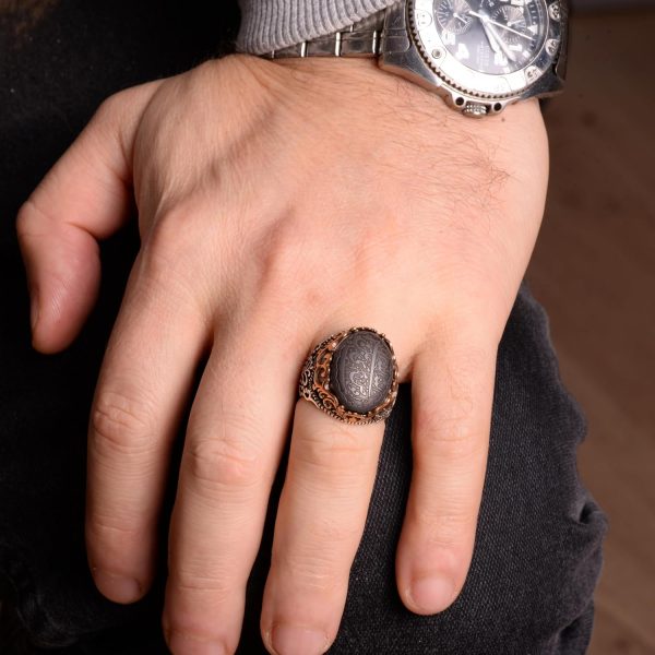 Gerçek Doğal Hematit Taş Yüzük, 925 Ayar Gümüş Yüzük, İslami Erkek Yüzüğü