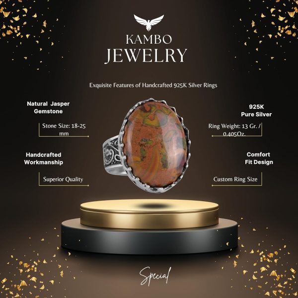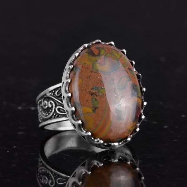 Gerçek Doğal Jasper Taşı Yüzük – 925 Ayar Gümüş Yüzük