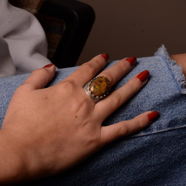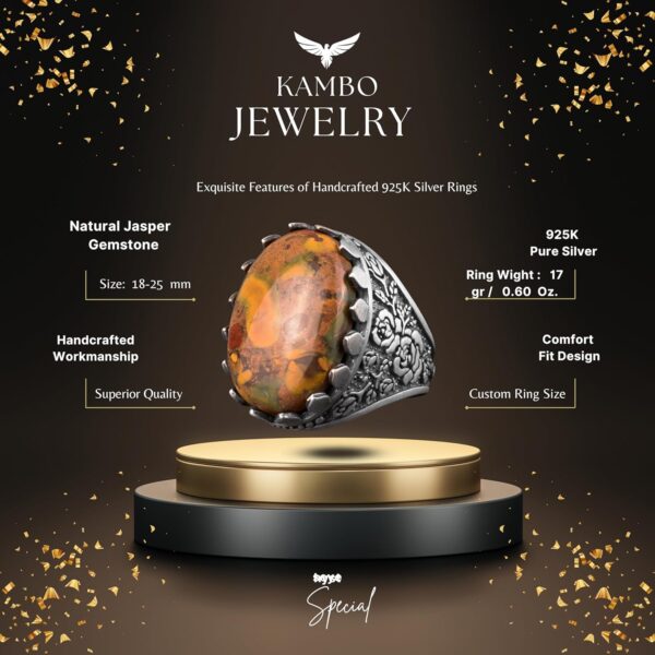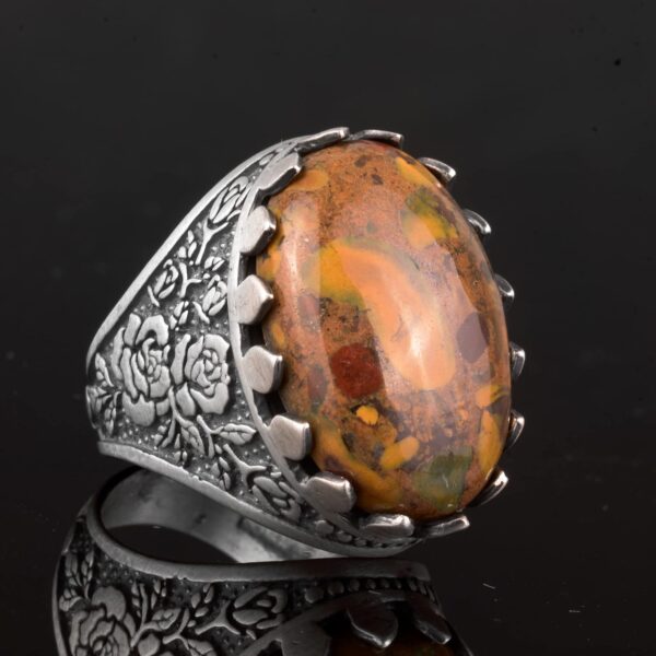 Gerçek Doğal Jasper Taşı Yüzük, Büyük Yüzük, 925 Ayar Gümüş Yüzük Erkekler İçin