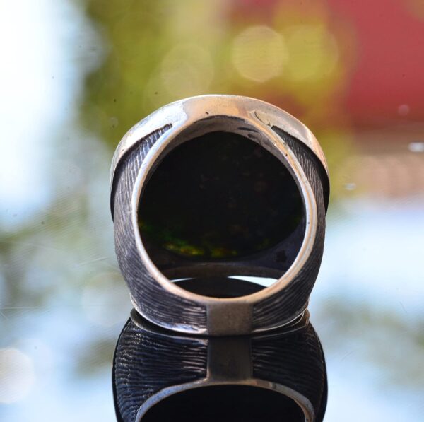 925 Ayar Gümüş erkek yüzük, etnik tasarım, Eşsiz El Yapımı Gümüş Yüzük. Taş Boyutu: 25 mm