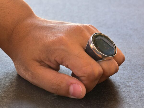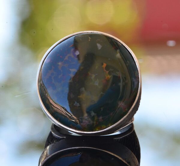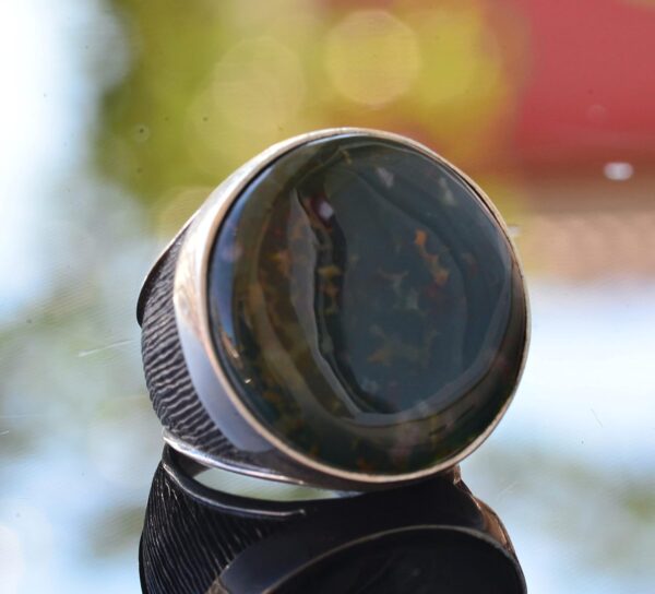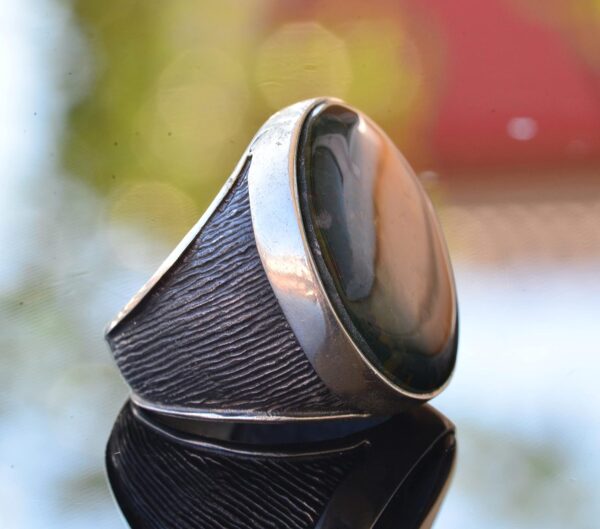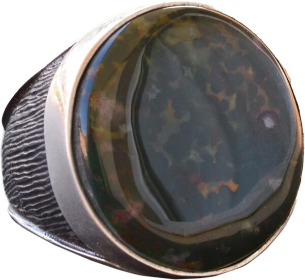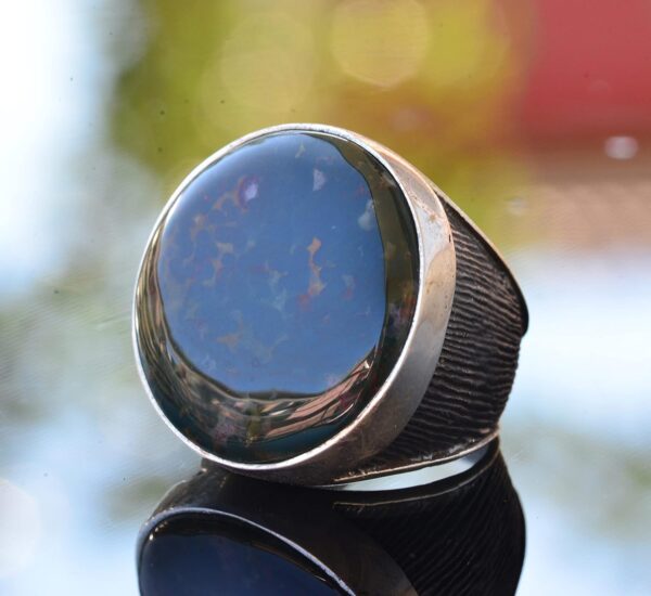 Gerçek Doğal Kan Taşı Yüzük, 925 Ayar Gümüş Erkek Büyük Yuvarlak Yüzük