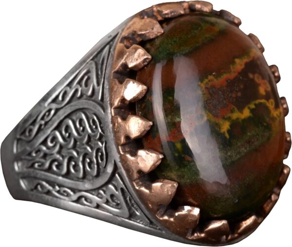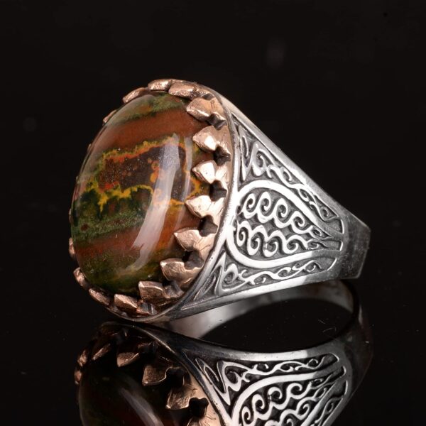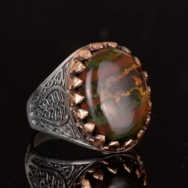 925 Ayar Gümüş erkek yüzüğü etnik tasarım, Eşsiz El Yapımı Gümüş Yüzük. Taş Boyutu: 20-15mm Ağırlık: 12.65 gr
