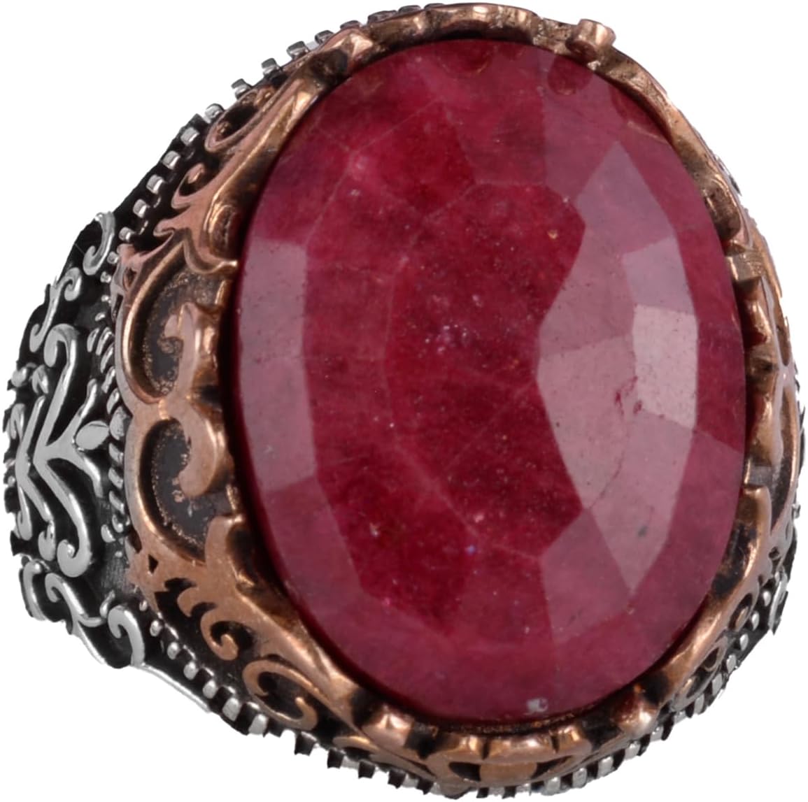 Gerçek Doğal Kan Taşı Yüzük, Katı Gümüş Büyük Yuvarlak Yüzük