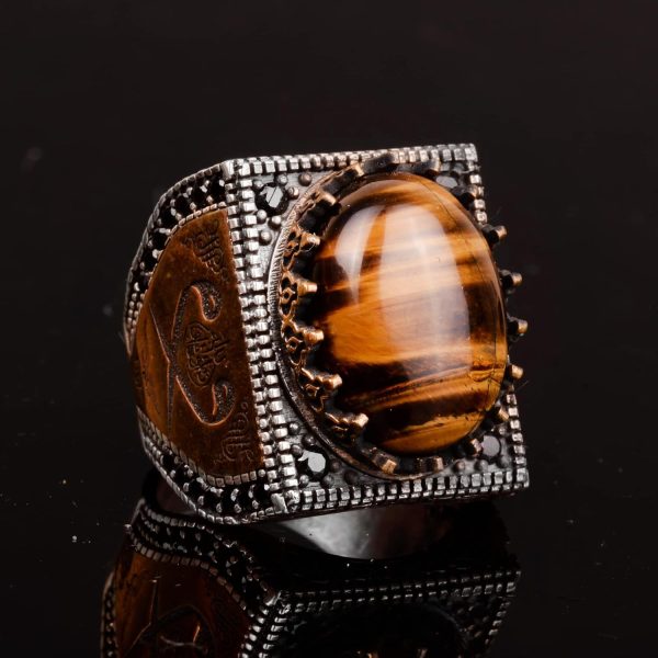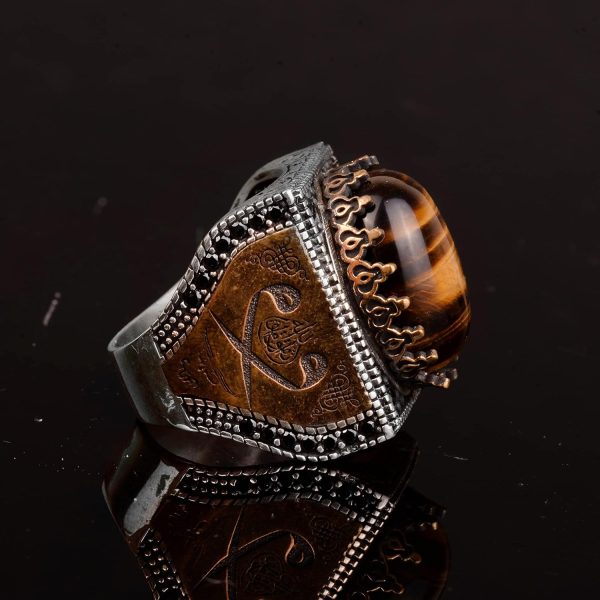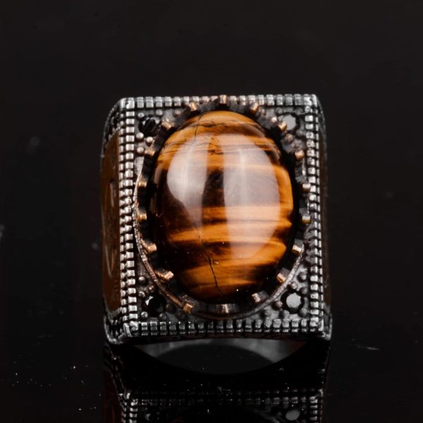 Gerçek Doğal Kaplan Göz Taşı Yüzük, 925 Ayar Gümüş Yüzük