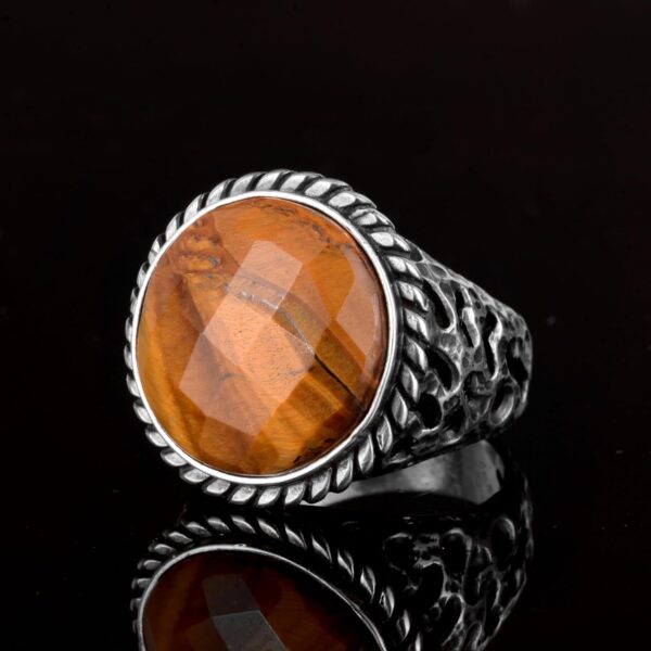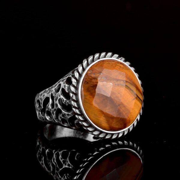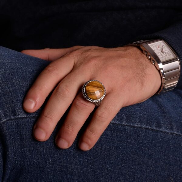 Gerçek Doğal Kaplan Gözü Taşı Yüzük, 925 Ayar Gümüş Erkek Yüzük