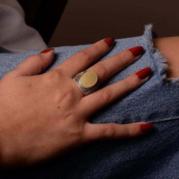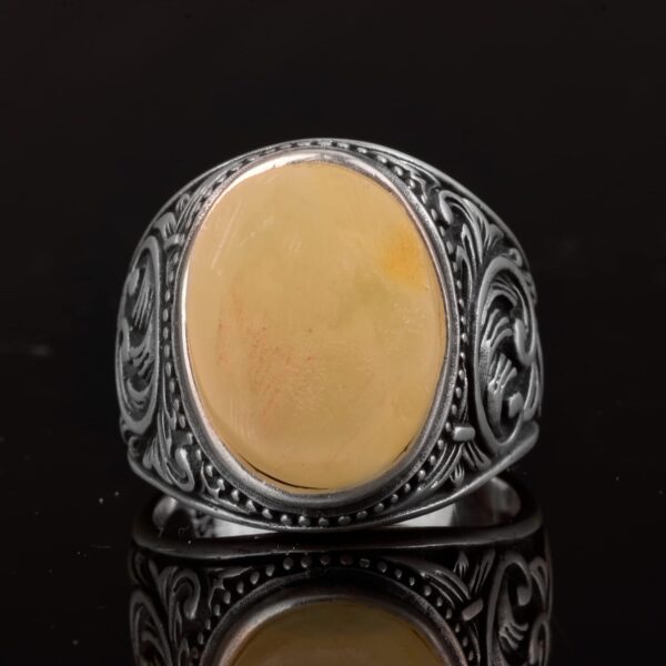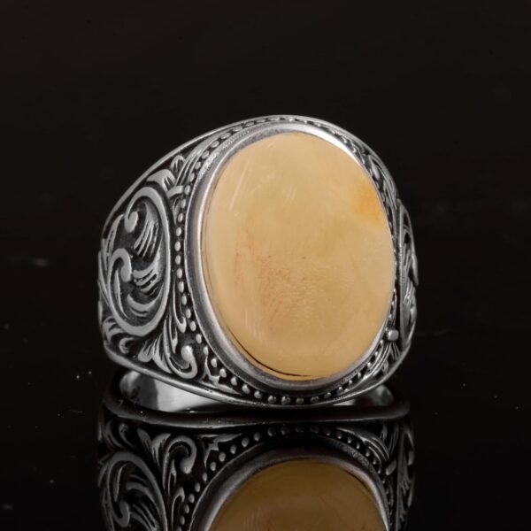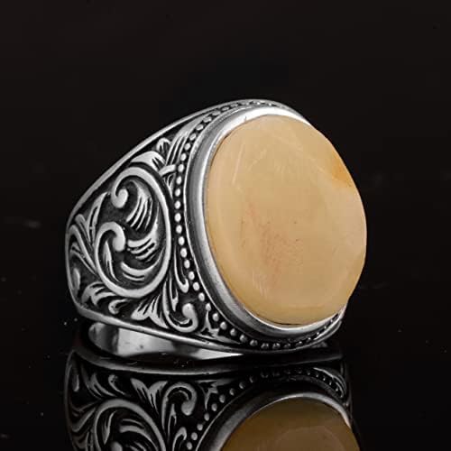 Gerçek Doğal Kehribar Taşlı Yüzük, Minimalist Yüzük, 925 Ayar Gümüş Yüzük Erkekler İçin