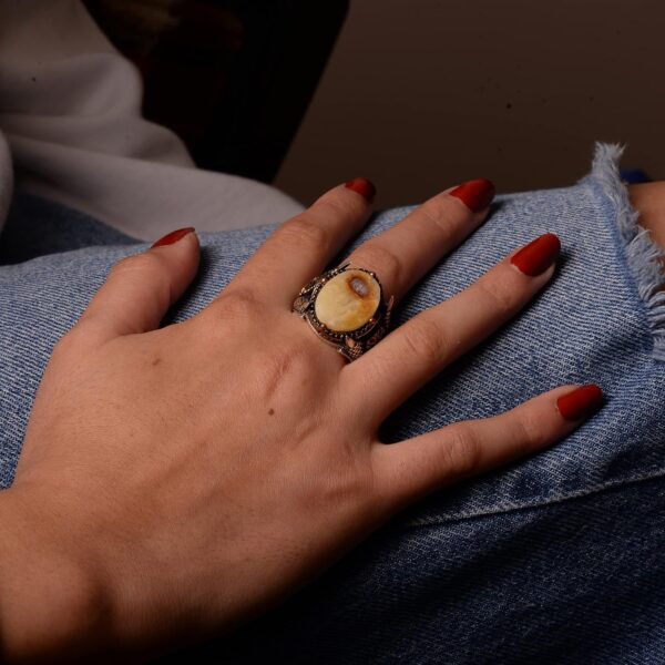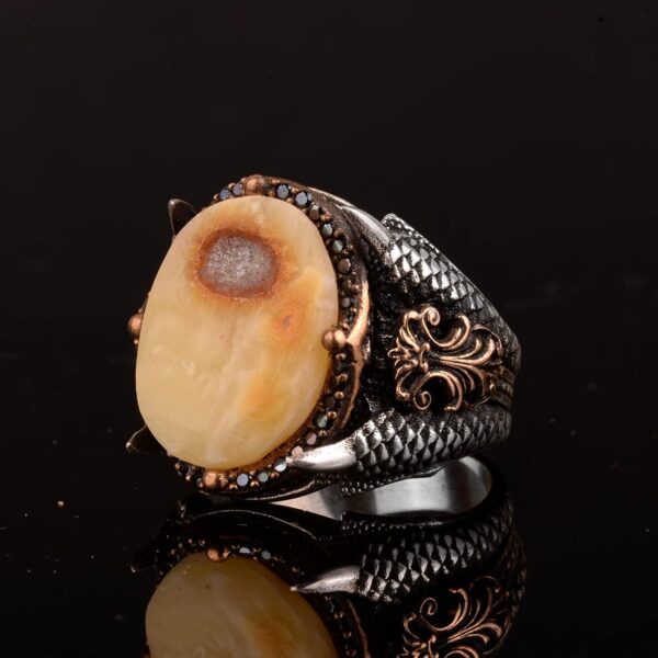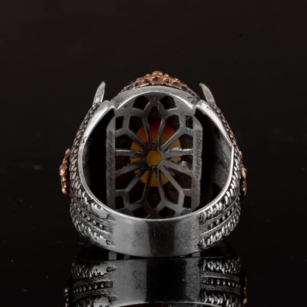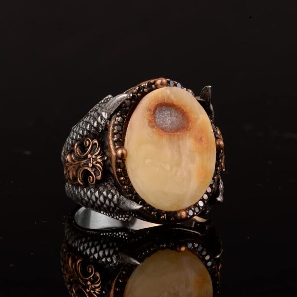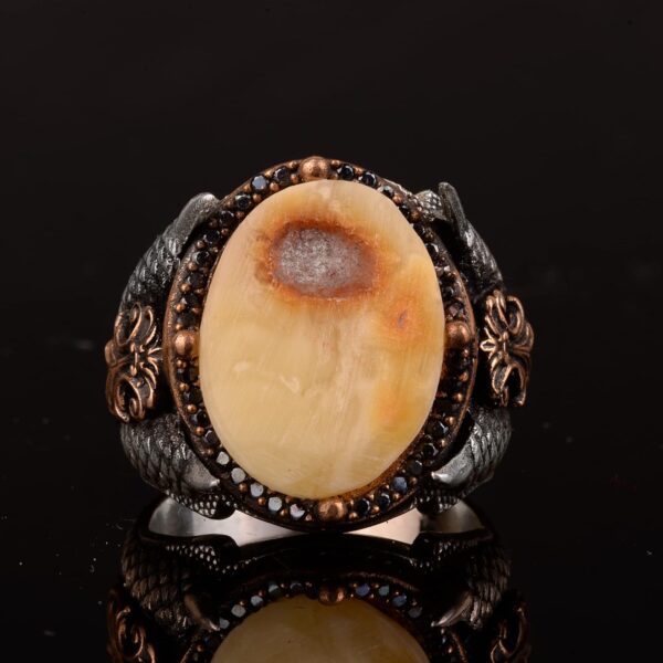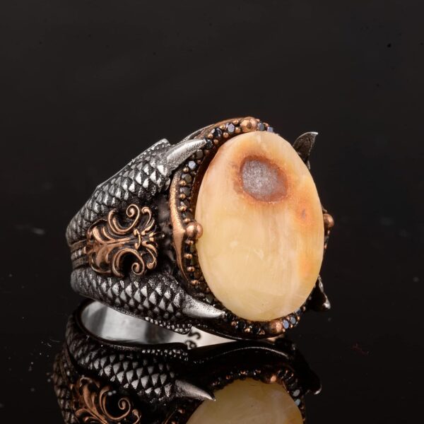 Gerçek Doğal Kehribar Taşlı Yüzük, Şahin Pençesi Yüzüğü, 925 Ayar Gümüş Yüzük Erkekler İçin