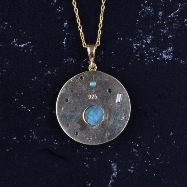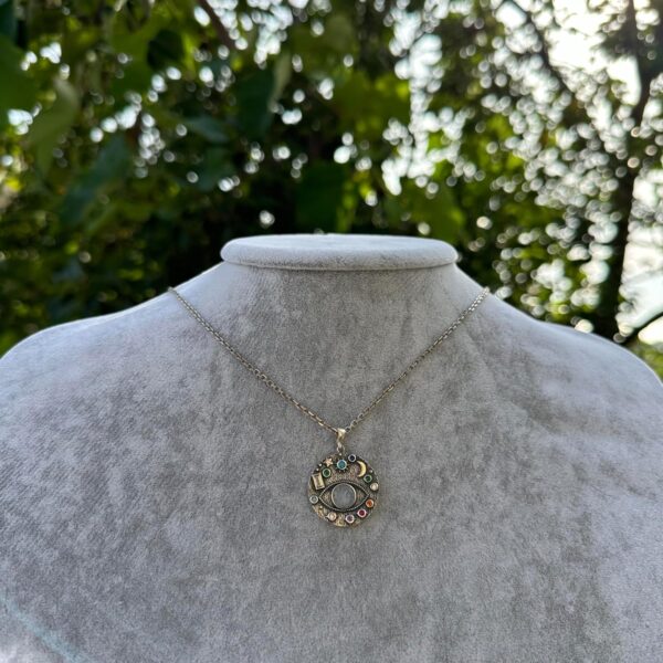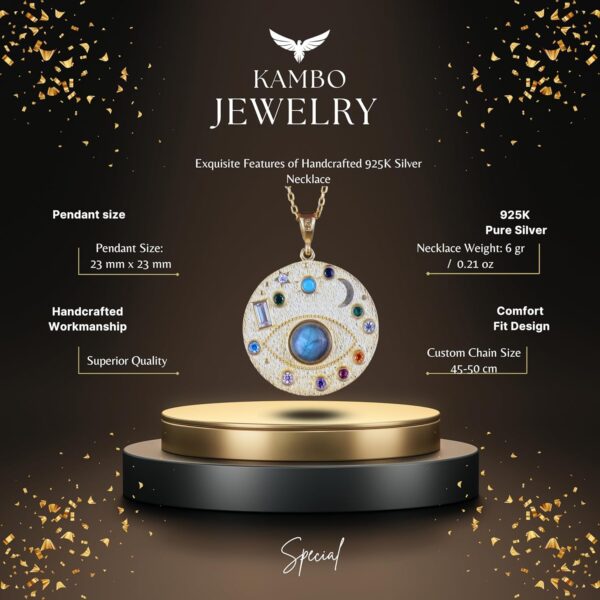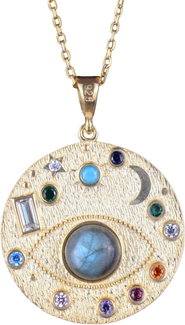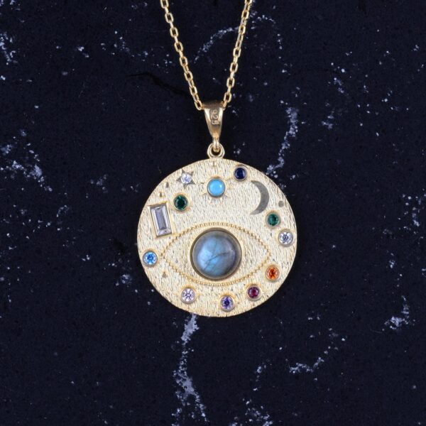 Gerçek Doğal Labradorit Taşlı Kolye – Altın Kaplama Sterlin Gümüş Nazar Boncuğu Kolye