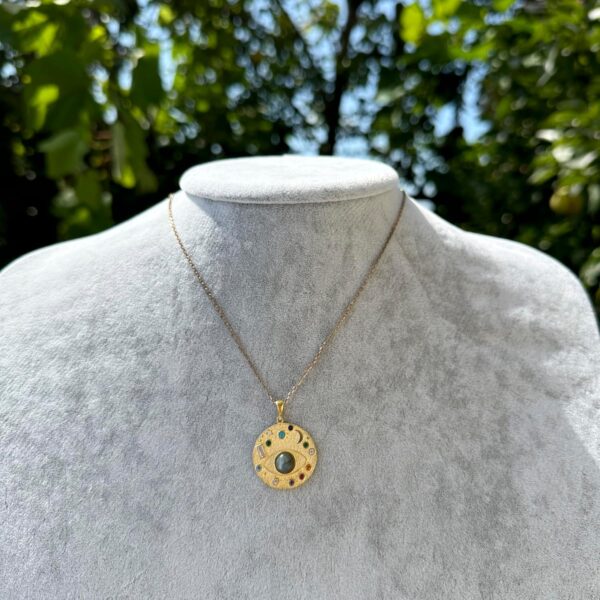Doğal Labradorit Taşı Kolye – Kadınlar için Altın Kaplama Göz Kolyesi