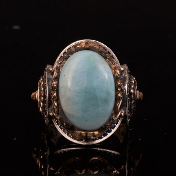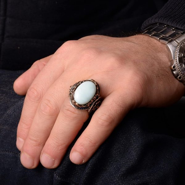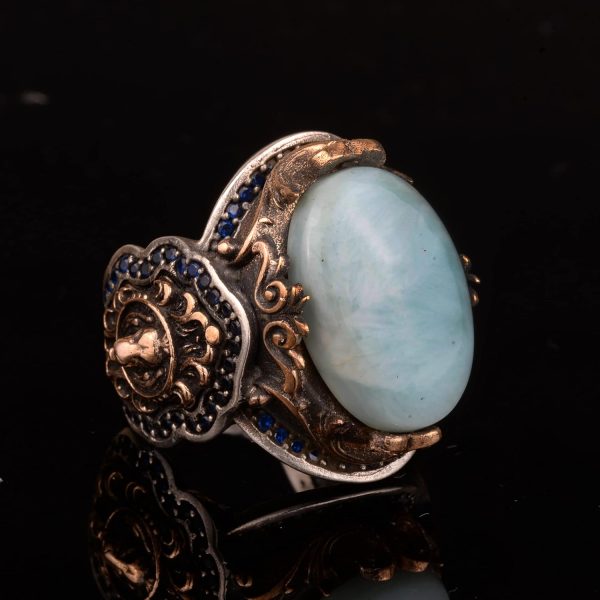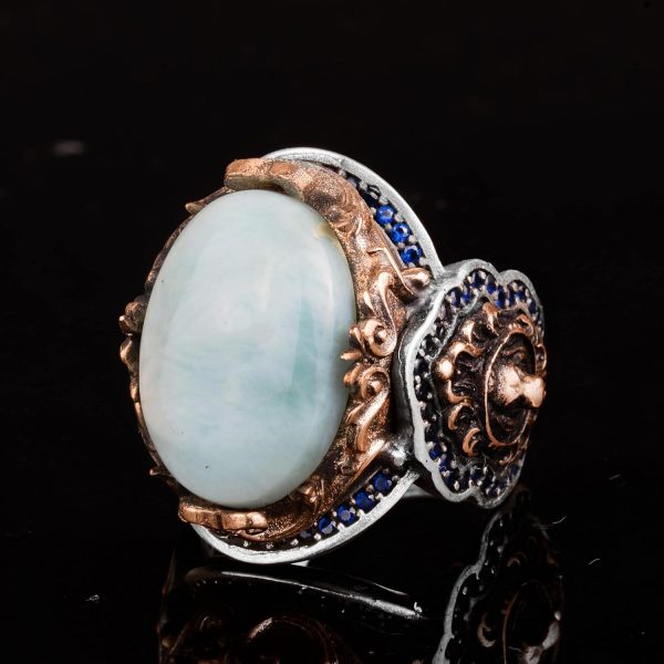 Gerçek Doğal Larimar Taşı Yüzük, Aslan Yüzüğü, 925 Ayar Gümüş Yüzük