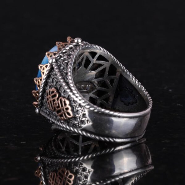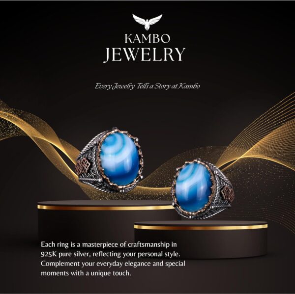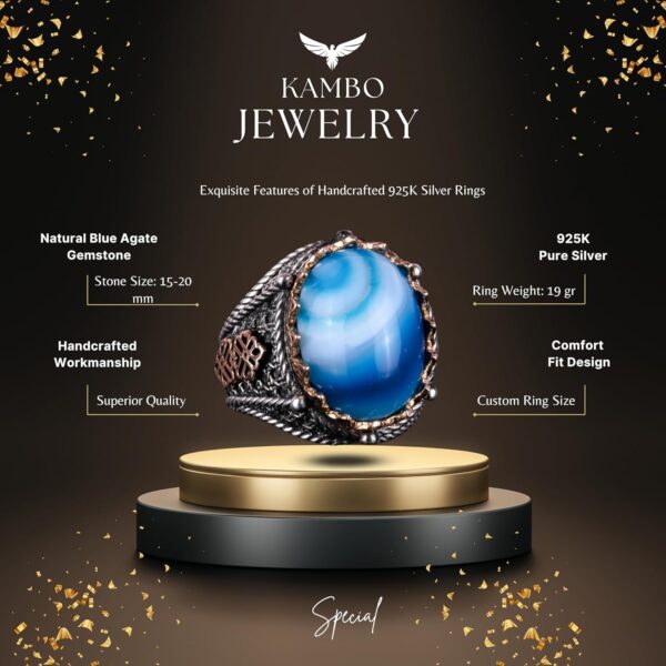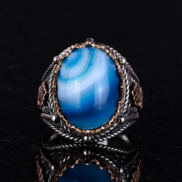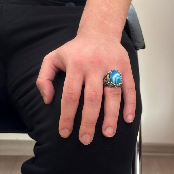 Gerçek Doğal Mavi Agat Taş Yüzük, 925 Ayar Gümüş Yüzük Erkekler İçin, Farklı Yüzük