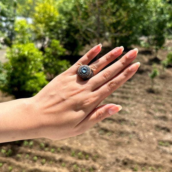 Gerçek Doğal Mavi Topaz Taş Yüzük – Sultan Yüzüğü – 925 Ayar Gümüş Yüzük