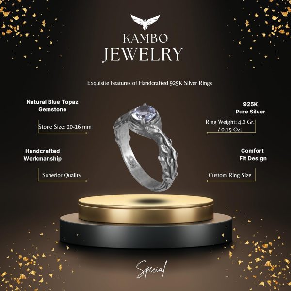 Şık ve benzersiz tasarımı, mavi topazın doğal güzelliğini vurgulayarak bu yüzüğü günlük kullanım veya özel etkinlikler için mükemmel hale getirir. Her yüzük titizlikle el yapımıdır ve görebileceğiniz ve hissedebileceğiniz üstün kalite ile detaylara gösterilen özenle üretilmiştir.