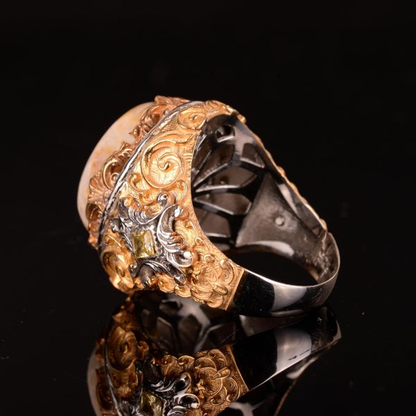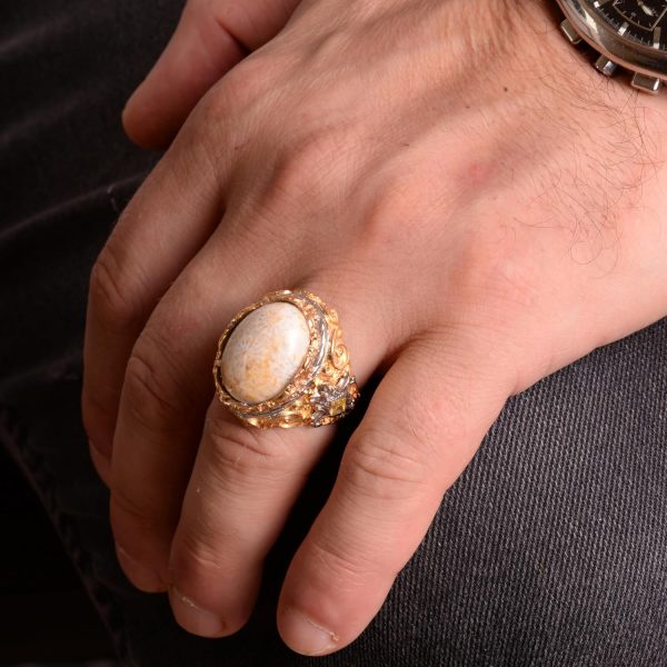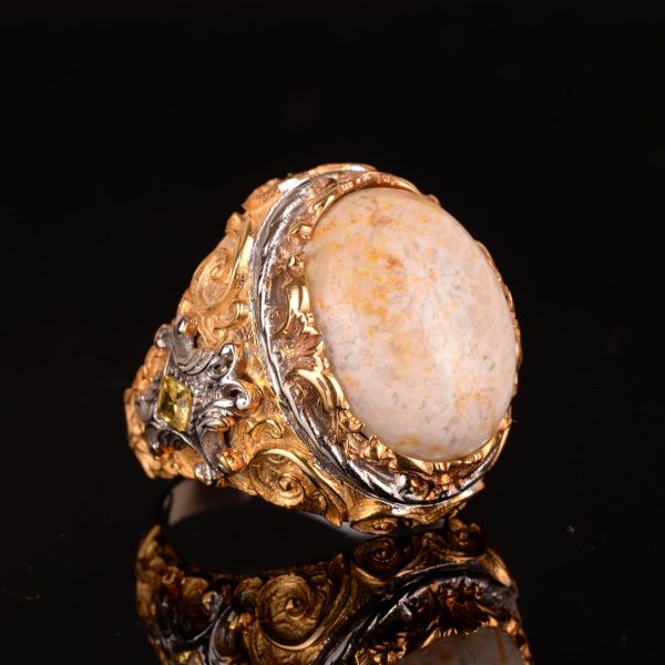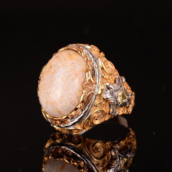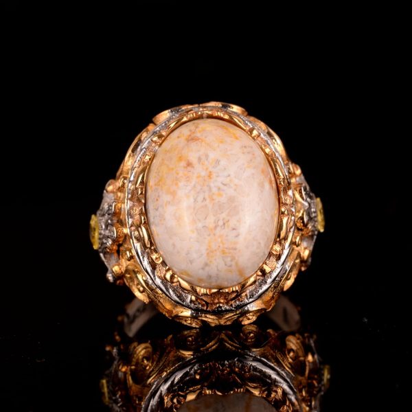 Gerçek Doğal Mercan Taşı Yüzük, Eşsiz Oval Yüzük, 925 Ayar Gümüş Yüzük. Ağırlık: 17.86 gr, Boyut: 20-15 mm