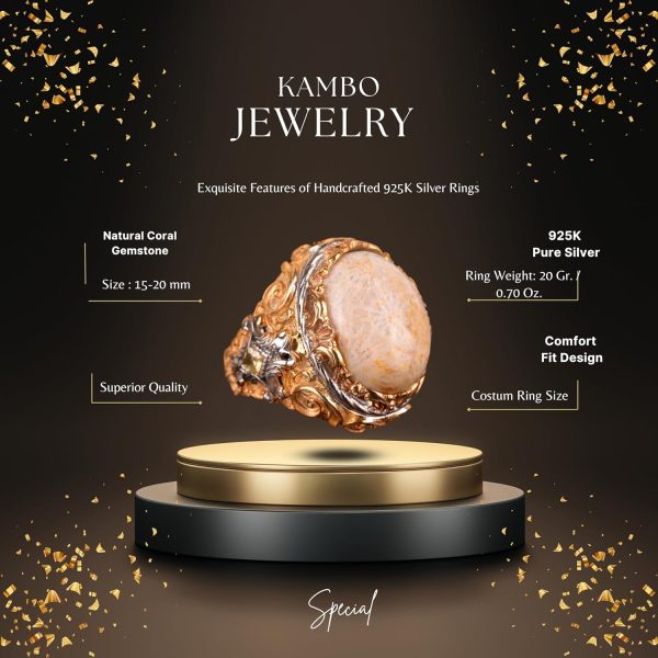 Gerçek Doğal Mercan Taşı Yüzük, 925 Ayar Gümüş Yüzük Erkekler İçin
