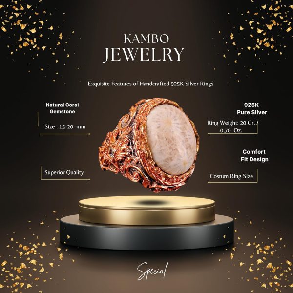 Gerçek Doğal Mercan Taşı Yüzük, El Yapımı Yüzük, Sultan Yüzüğü, 925 Ayar Gümüş Yüzük