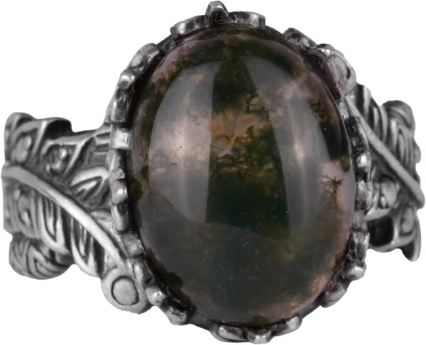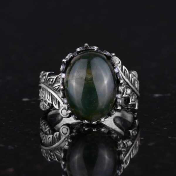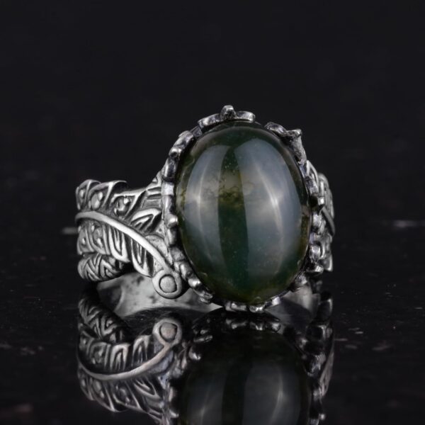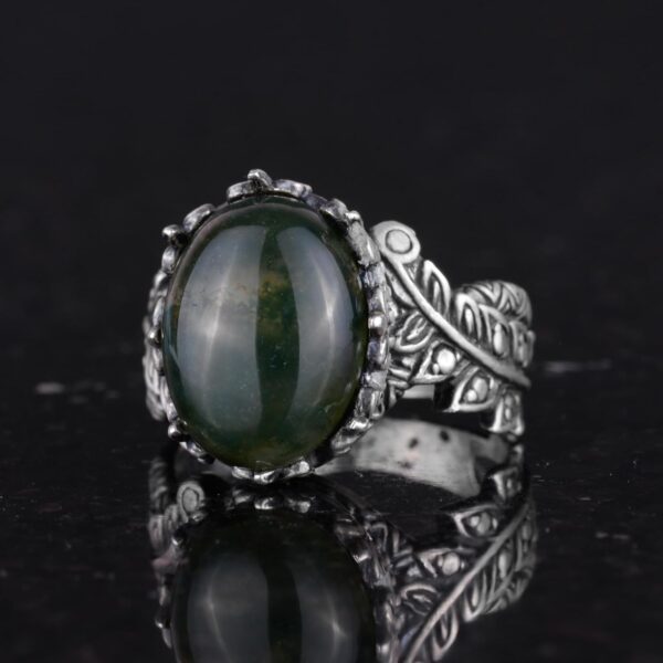 Gerçek Doğal Moss Agat Taşlı Gümüş Bayan Yüzük, Vintage Bohem Tasarım