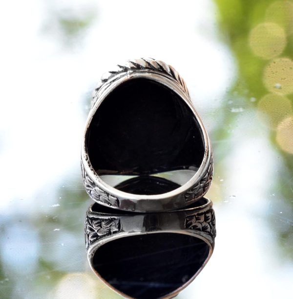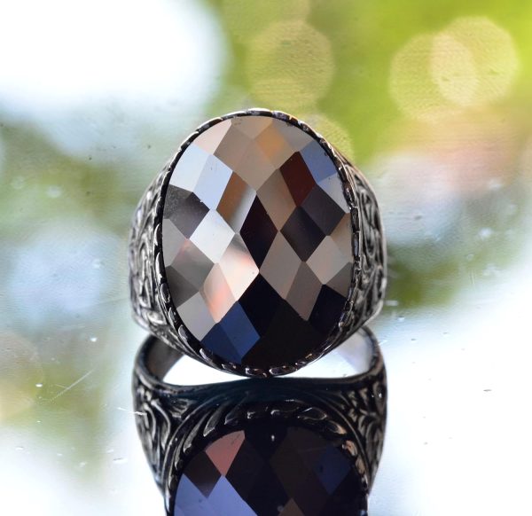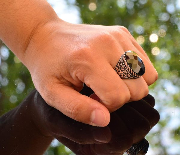 Gerçek Doğal Obsidan Yüzük, El Yapımı Yüzük, Gümüş Erkek Yüzüğü, siyah
