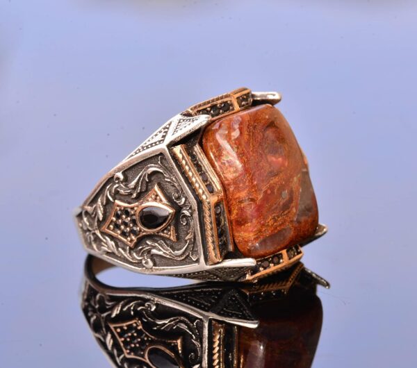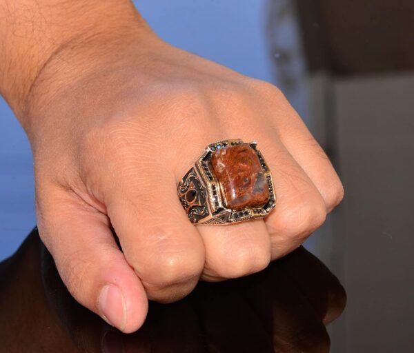 Gerçek Doğal Pietersite Dikdörtgen Taş Yüzük – 925 Ayar Gümüş Gerçek Taş Yüzük