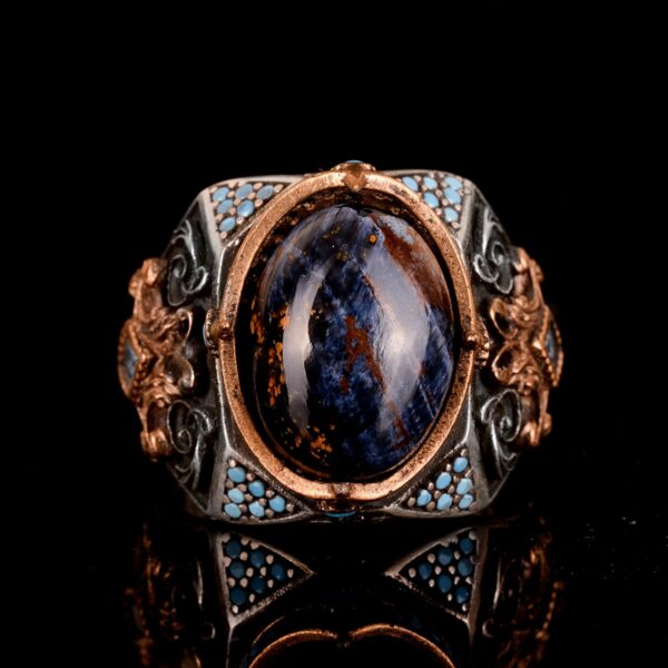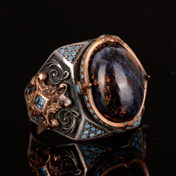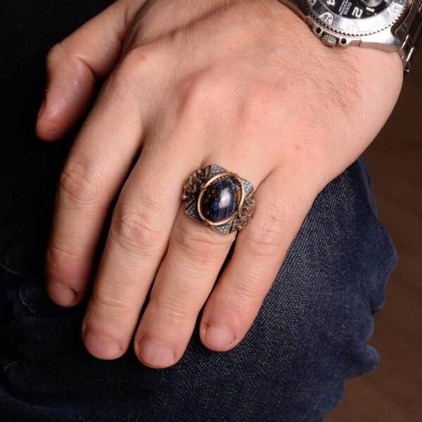 Gerçek Doğal Pietersite Taşlı Yüzük, El Yapımı Yüzük, 925 Ayar Gümüş Yüzük Erkekler İçin