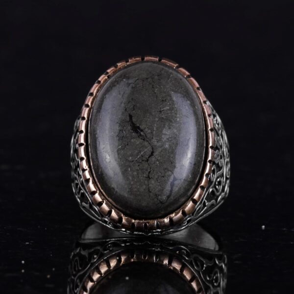 Gerçek Doğal Pirit Taşı Yüzük, 925 Ayar Katı Gümüş Erkek Yüzük, Bereket Manifestasyonu Tasarımı