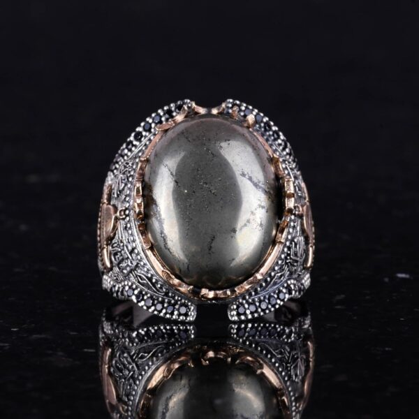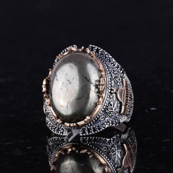 Gerçek Doğal Pirit Taşı Yüzük, 925K Sert Gümüş Erkek Yüzüğü, Refah Manifestasyonu Tasarımı