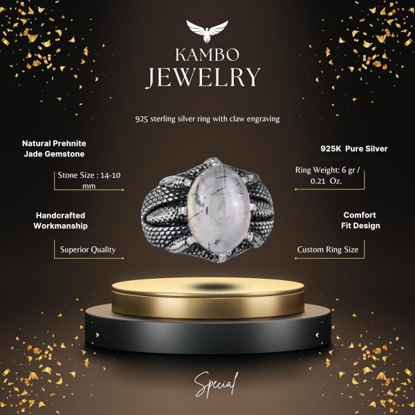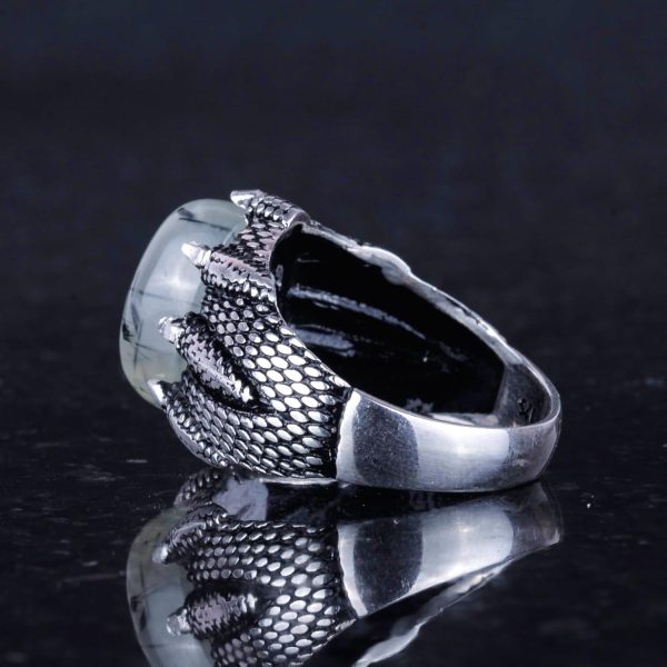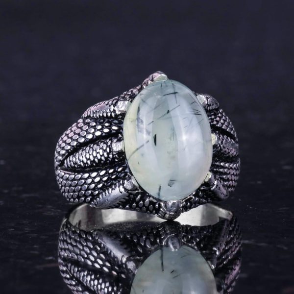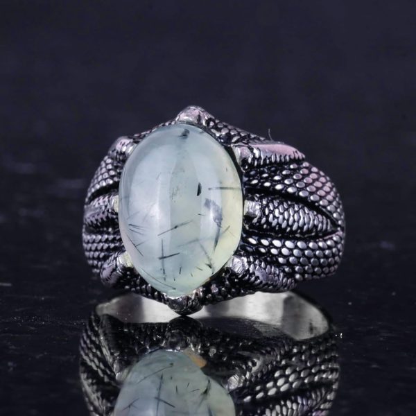 Gerçek Doğal Prehnit Yeşim Taşı ile Yapılmış Gümüş Pençe Yüzük – Terazi İçin Barış ve Spiritüel Bağlantı Yüzüğü