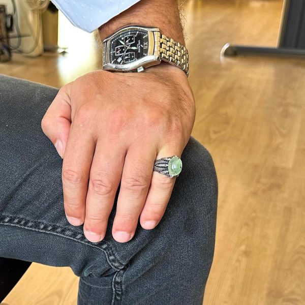 Bu olağanüstü yüzük, yüksek kaliteli gümüşten üretilmiştir ve sakinleştirici doğal Prehnit Yeşim taşını saran cesur bir pençe ayarı ile dikkat çekmektedir. Sakinleştirici ve koruyucu özellikleri ile bilinen Prehnit Yeşim’in, barışı, spiritüel bağlantıyı ve duygusal dengeyi artırdığına inanılmaktadır.