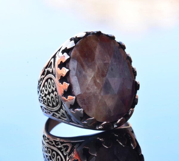 Gerçek Doğal Safir Oval Taş Yüzük, 10.60 Karat – Gümüş Erkek Yüzüğü