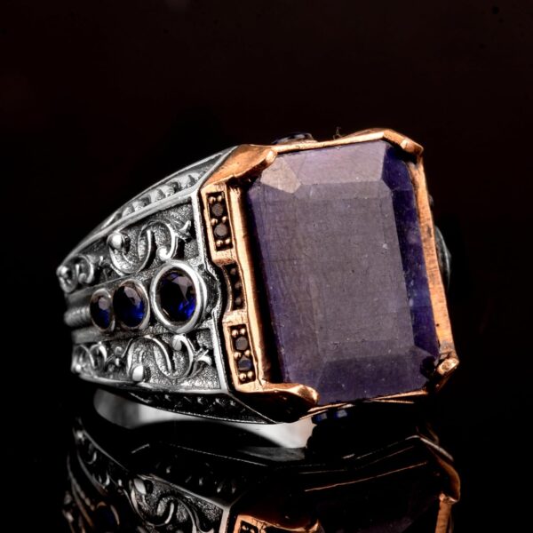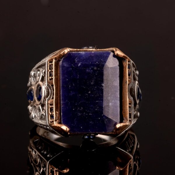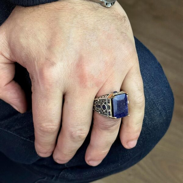 Gerçek Doğal Safir Taşlı Yüzük, 925 Ayar Gümüş Erkek Yüzüğü, El Yapımı Yüzük Ağırlığı: 19.40gr Taş Boyutu: 15-20mm