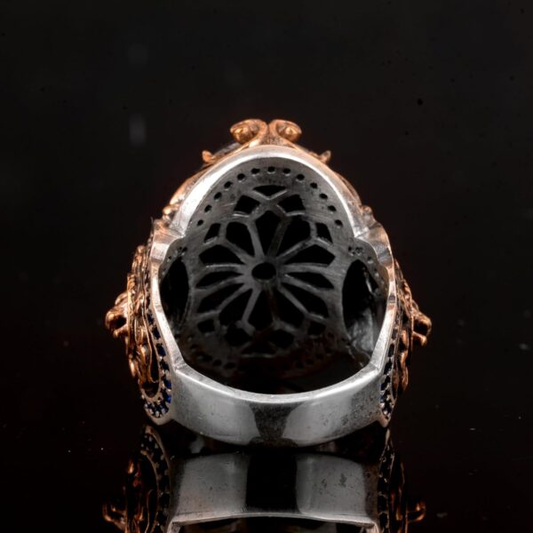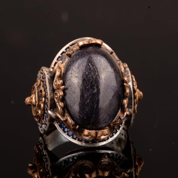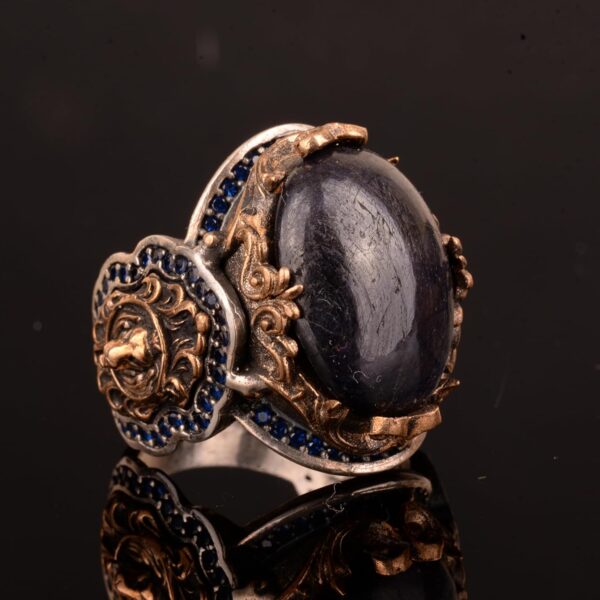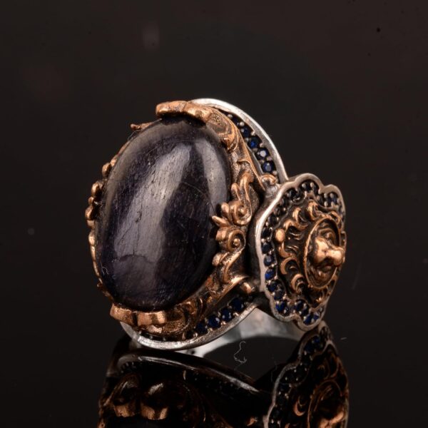 Gerçek Doğal Safir Taşlı Yüzük, Aslan Yüzüğü, 925 Ayar Gümüş Erkek Yüzüğü, El Yapımı Yüzük Ağırlığı: 22.83gr Taş Boyutu: 15-21mm